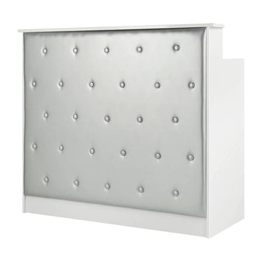 - Front i syntetisk læder: Fronten er polstret med syntetisk læder og dekoreret med knapper. Dette giver et eksklusivt og unikt look, der passer perfekt til glamourøse og elegante saloner.