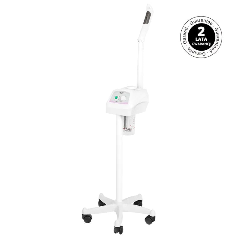 This upmarket ozone digital facial steamer combines modern and functional design with advanced features. It features a swivel arm and rotating head with an aroma container for essential oils, providing a relaxing experience. With adjustable height and a stable plastic base on wheels, easy movement and precise positioning during treatments are ensured. Perfect for professional skin care clinics.
