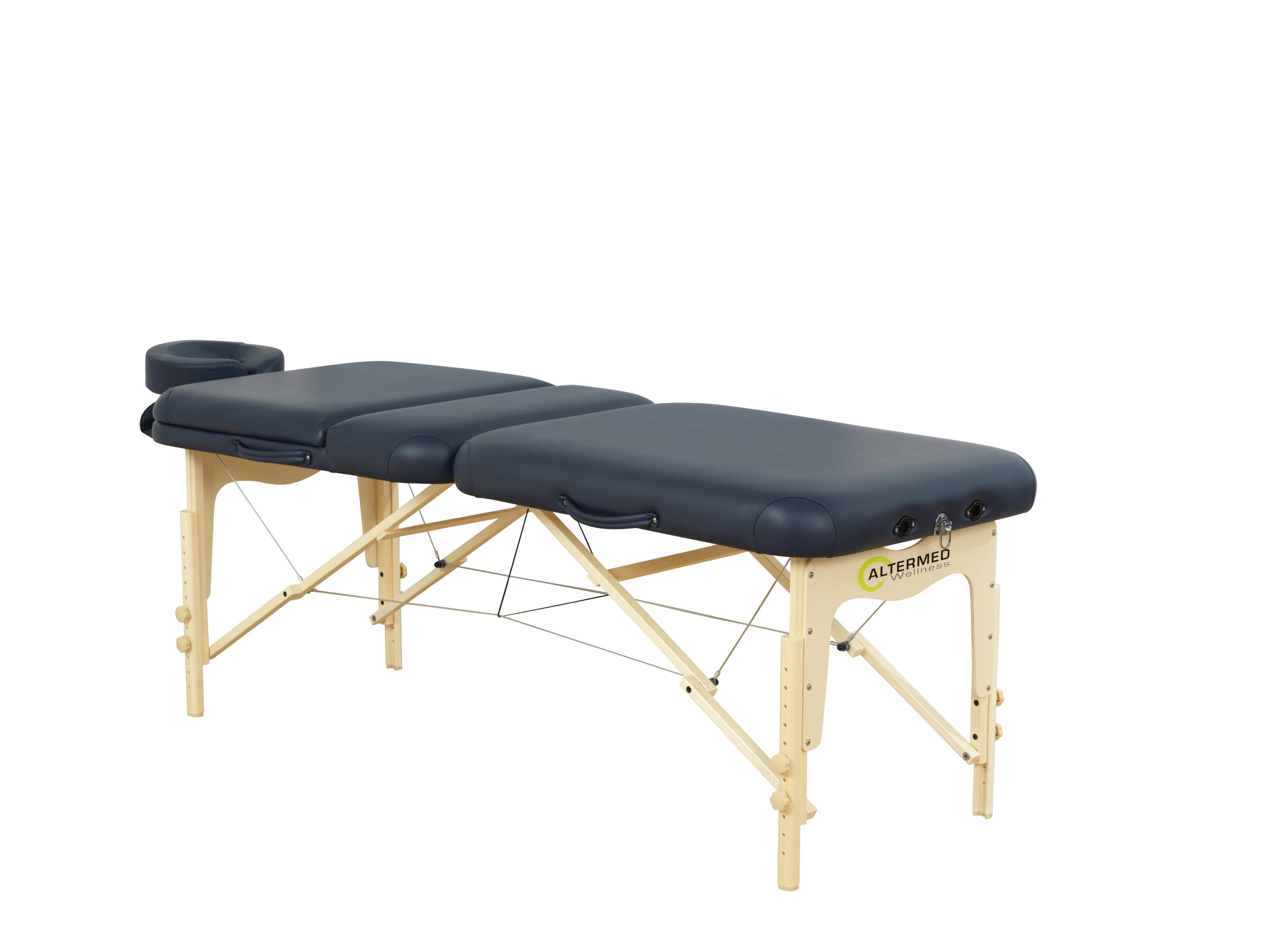 The included deluxe headrest is equipped with an adjustable luxury pillow, which provides optimal support and comfort for the client. The double-stitched and rounded corners give the massage table an exclusive finish, completing the elegant design.