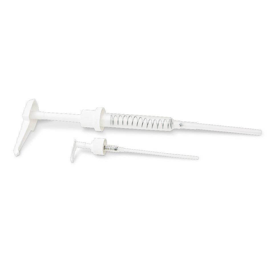 Pumperne fås i to størrelser og passer til Earthlite’s og LEC’s klassiske olieflasker på 3,8 liter og 237 ml. Ideel til både klinikbrug og mobile behandlere, der ønsker effektiv og ren håndtering af massageolie – selv med olierede hænder.