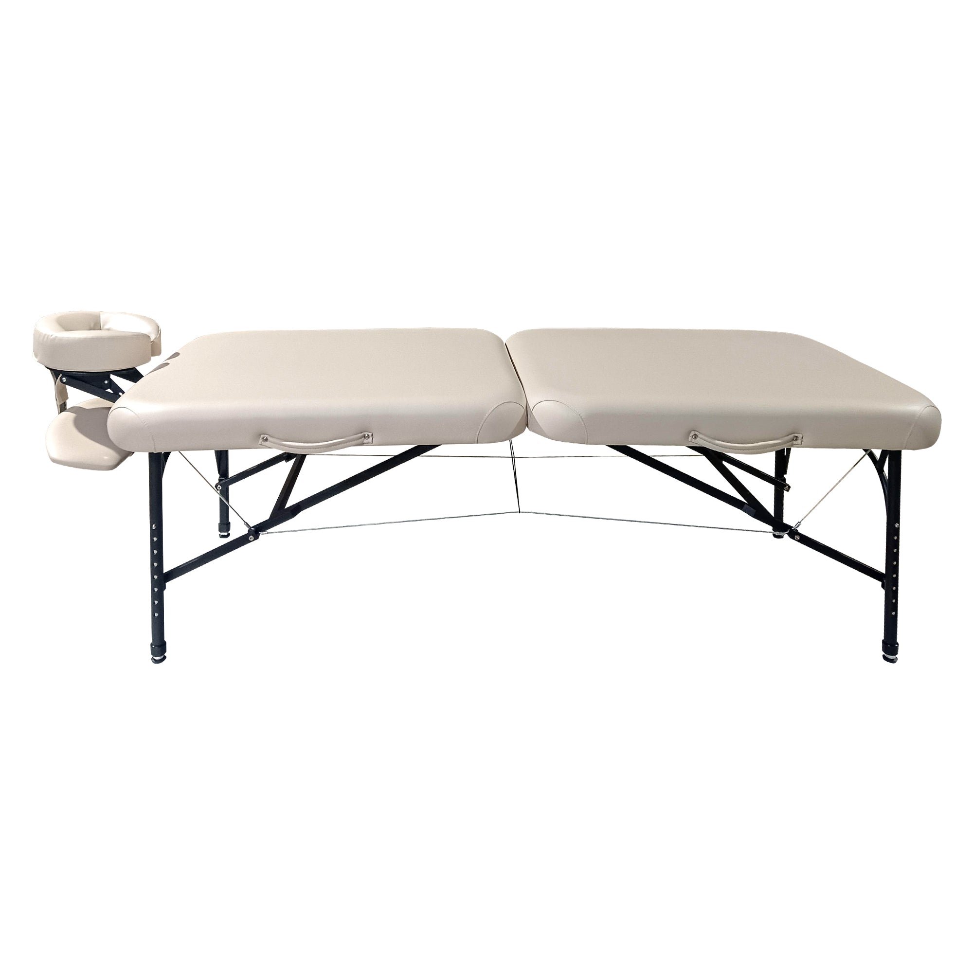 Experience the perfect combination of lightweight, stability and portability with our massage table, designed specifically for mobile masseurs and therapists. This massage table is built with a sturdy, powder-coated aluminum frame, ensuring low weight without compromising strength. The underside of the table is made of heavily woven nylon, inspired by high-performance climbing equipment, making it both lightweight and extremely durable.