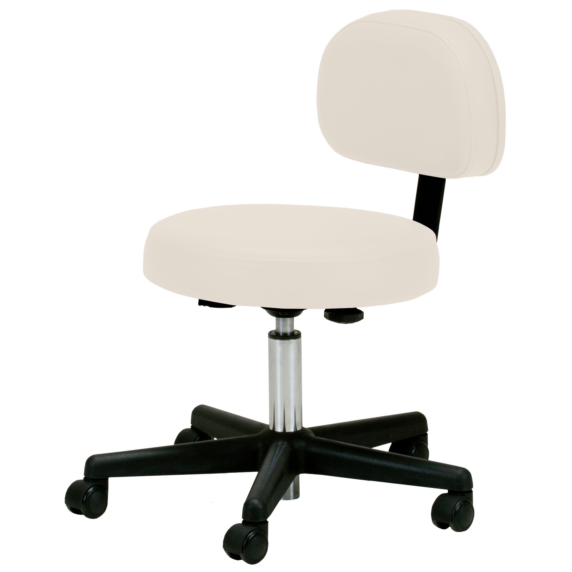 Ryglænet giver ekstra støtte i lænden og aflaster under længere sessioner. Stolen ruller let på de 5 robuste hjul, hvilket giver dig fuld bevægelighed rundt om briksen.